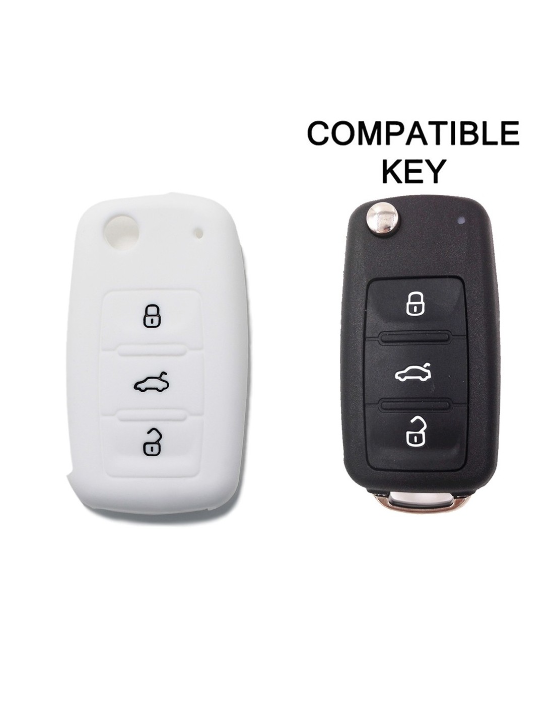 Guscio Silicone Cover Chiave per Telecomando Volkswagen Seat Skoda Portachiave Bianco VW Golf Passat Polo Touran Tiguan Eos Sharan Touareg Phateon Caddy T5 Amarok Lupo Seat Altea Alhambra Leon Ibiza Exeo Cordoba Arosa Skoda Octavia Fabia Superb Roomster