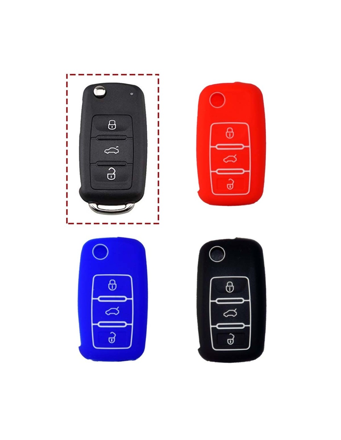 Guscio in Silicone Cover Chiave per Telecomando Volkswagen Seat Skoda Portachiave Blu VW Golf Passat Polo Touran Tiguan Eos Sharan Touareg Phateon Caddy T5 Amarok Lupo Seat Altea Alhambra Leon Ibiza Exeo Cordoba Arosa Skoda Octavia Fabia Superb Roomster