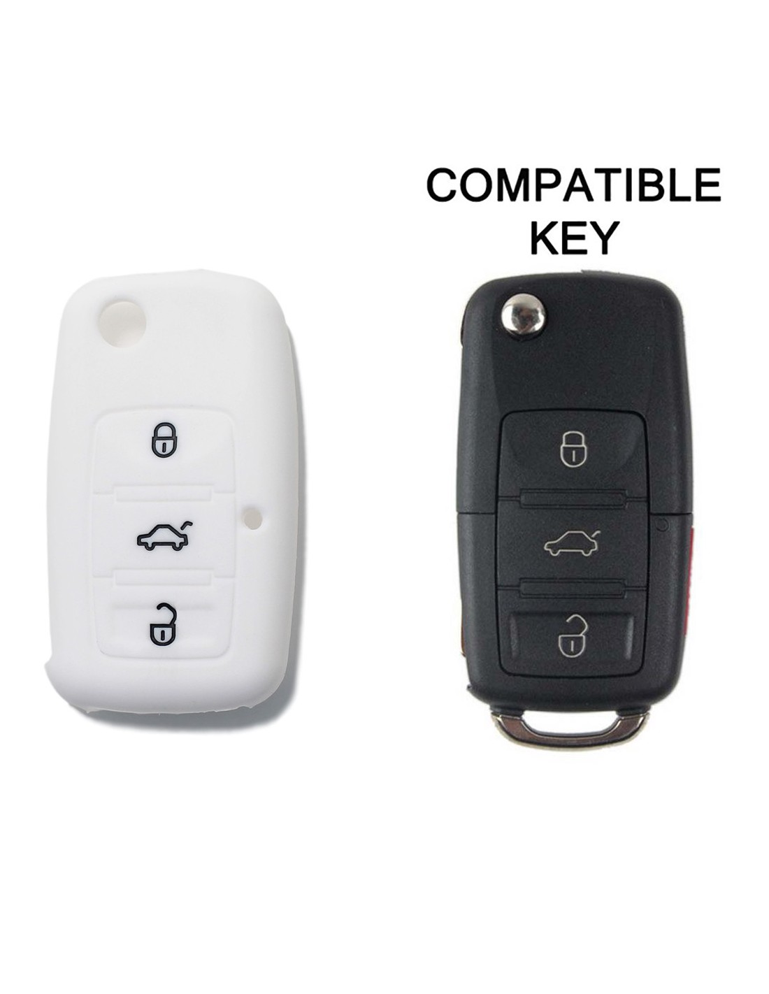 Guscio Silicone Cover Chiave per Telecomando Volkswagen Seat Skoda Portachiave Bianco VW Golf Passat Polo Touran Tiguan Eos Sharan Touareg Phateon Caddy T5 Amarok Lupo Seat Altea Alhambra Leon Ibiza Exeo Cordoba Arosa Skoda Octavia Fabia Superb Roomster