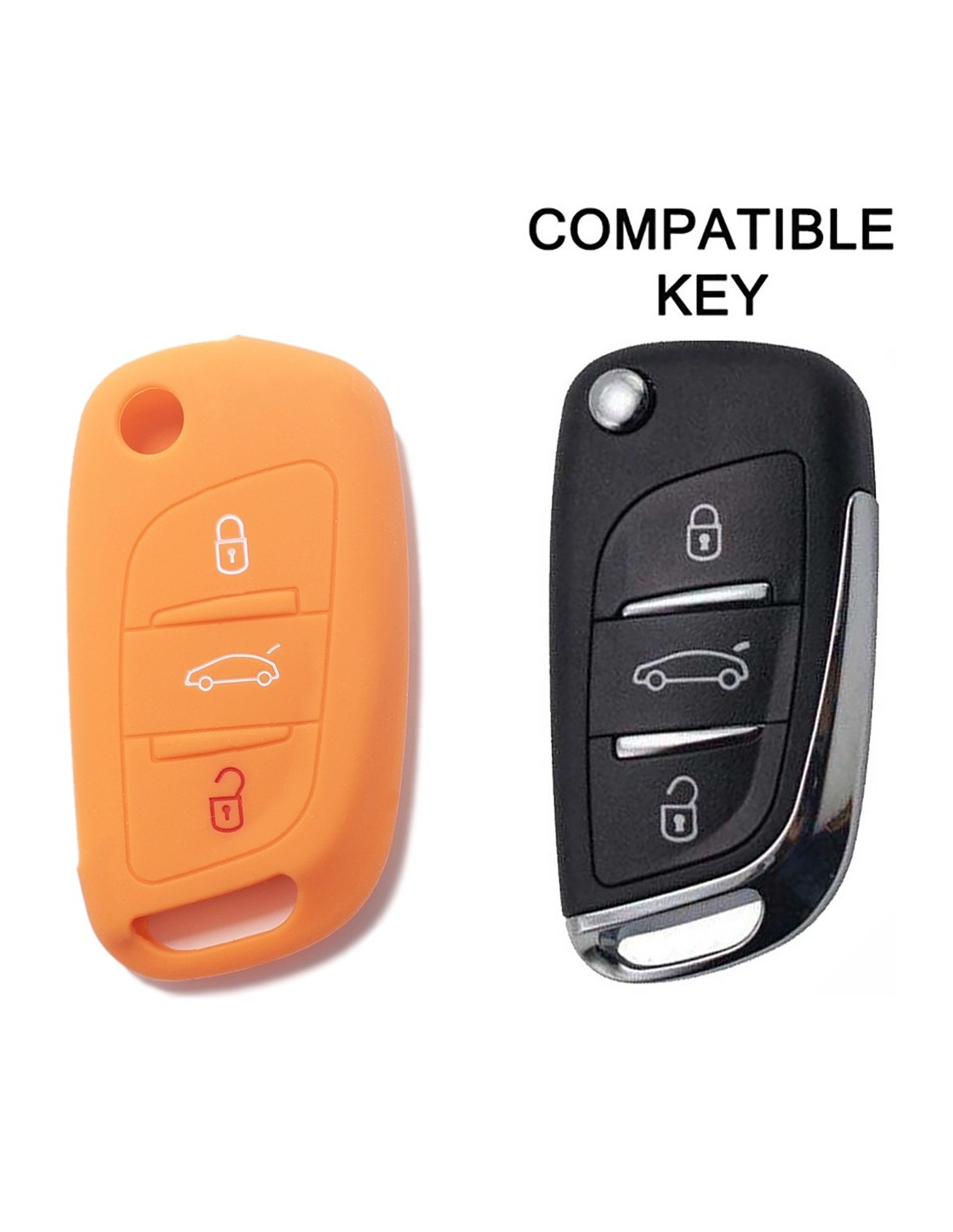 Guscio in Silicone Cover Chiave per Telecomando Citroen DS3 DS4 DS5 DS6 C2 C3 C4 C5 C8 Jumper Jumpy Berlingo Saxo Picasso Portachiave Arancione