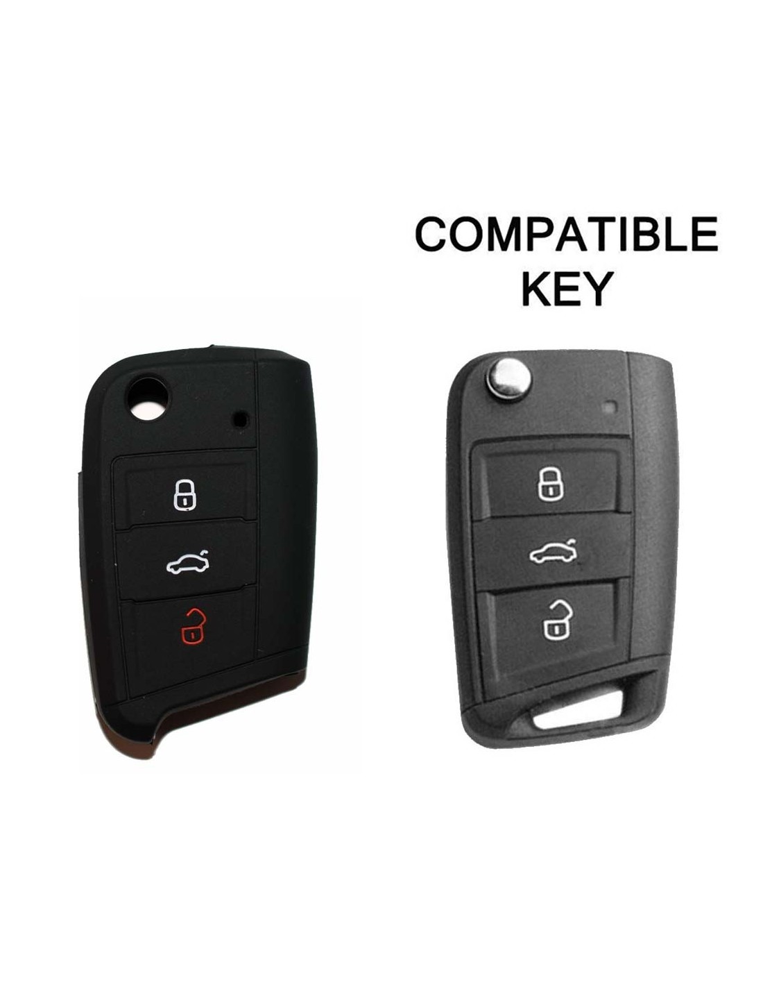 Guscio in Silicone Cover Chiave per Telecomando Volkswagen Golf (Serie 7) Seat Leon 7 Ibiza 7 Skoda Octavia A7 Portachiave Nero
