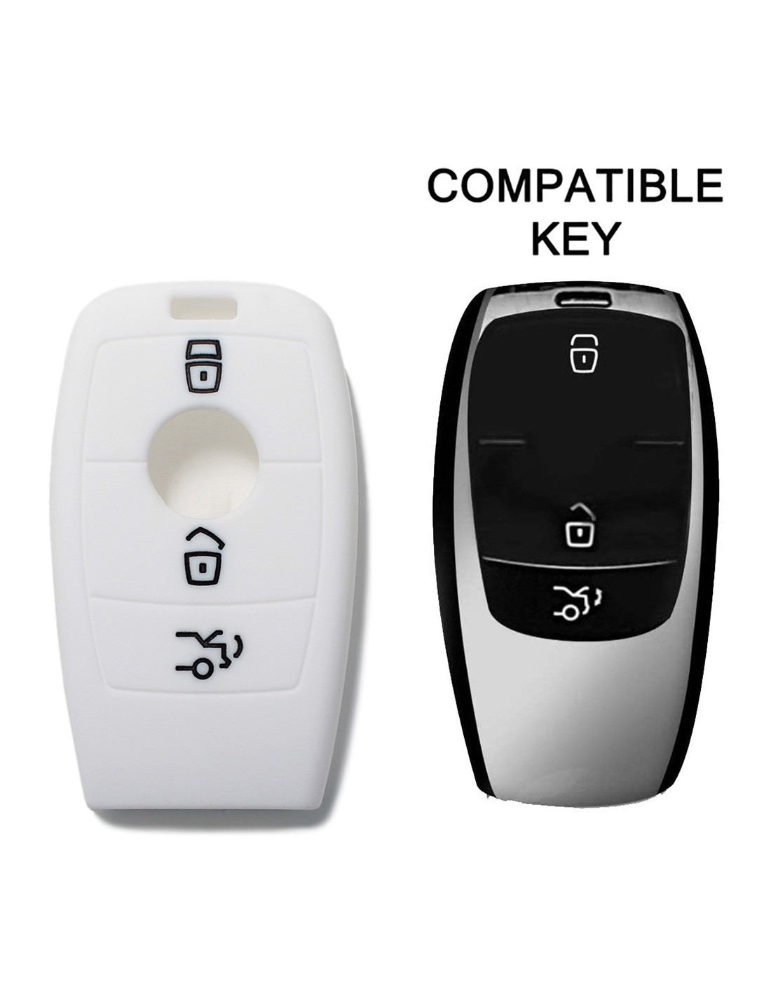 Guscio Silicone Cover Chiave per Telecomando Mercedes 3 Tasti Bianco Keyless-Entry Classe E 2017 E200 E300 Classe S 2018 S450 S550e S560 S63 AMG S65 AMG