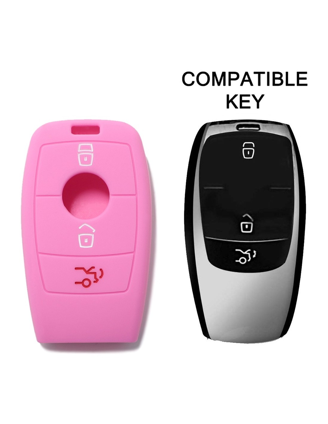 Guscio Silicone Cover Chiave per Telecomando Mercedes 3 Tasti Rosa Keyless-Entry Classe E 2017 E200 E300 Classe S 2018 S450 S550e S560 S63 AMG S65 AMG