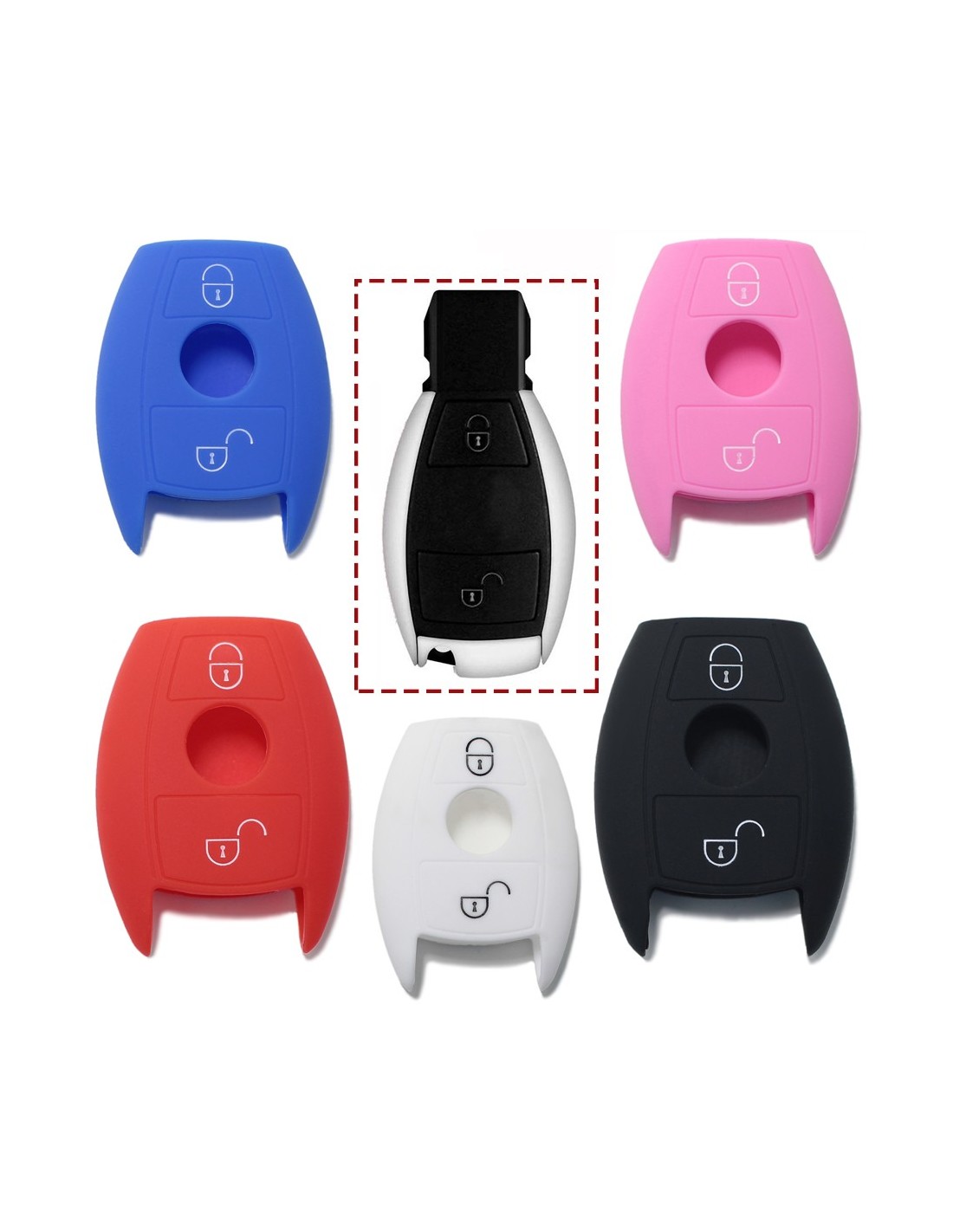 Guscio in Silicone Cover Chiave per Telecomando Mercedes Benz 2 Tasti Rosso A B C E S V W R CL ML CLK W176 W204 W211 W245 A203